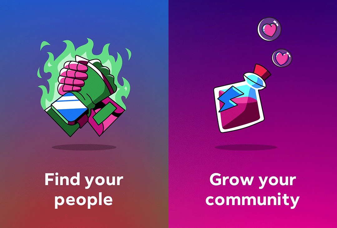 Animations overlaid on footage of real gaming creators show how Facebook Gaming unlocks the power to build communities around their unique personal brands.
